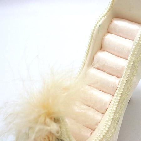 とびっきりスイートなお店で見つけた靴の形のジュエリーケース。羽のフワフワ感がたまりません。