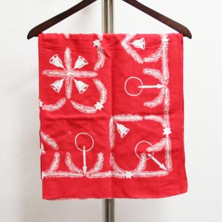 赤いクリスマス柄のファブリックは、5カ国目のフィンランドで、雑貨バイヤーが買い付けたもの。