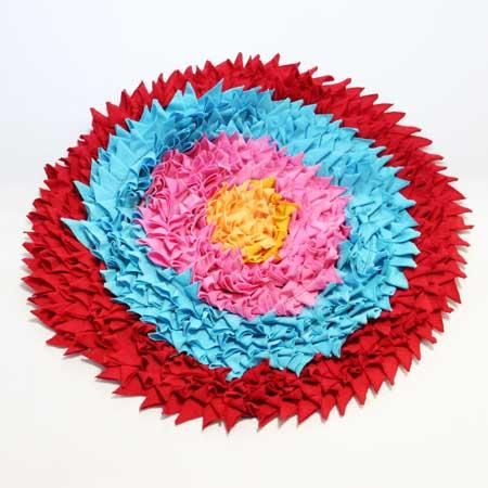 切れ端を集めたような、カラフルカラーのバスマット。