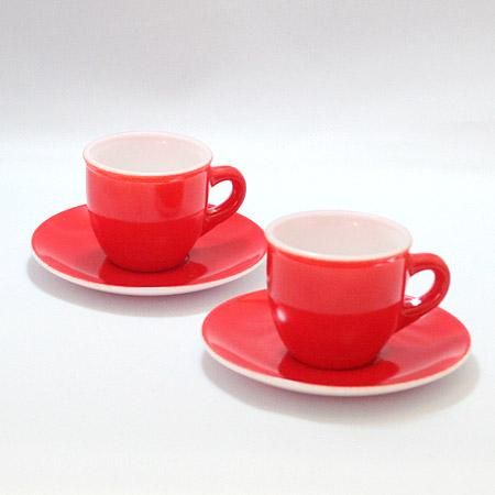 赤いカップは、かなり小ぶりで色も質感もとてもかわいい!エスプレッソなどを飲む時に使って。
