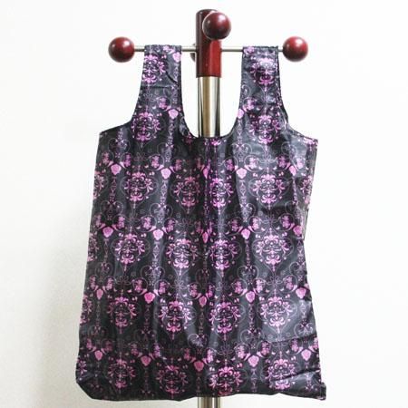 ゴシック調の柄がフランスらしいエコバッグ。折り畳めばかなりコンパクトに。