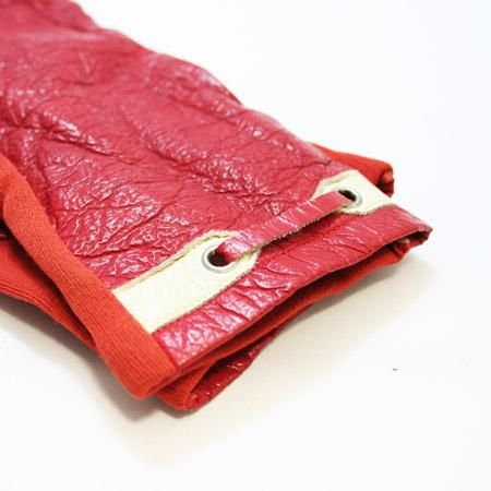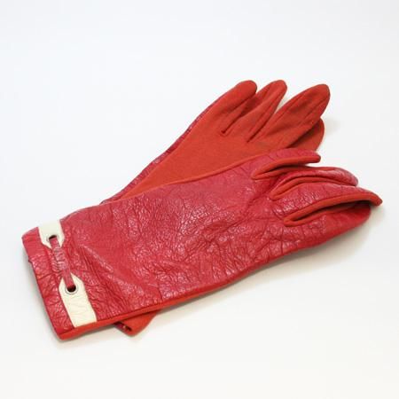 赤と白の色合わせが可愛い皮の手袋。コーディネートのポイントに。