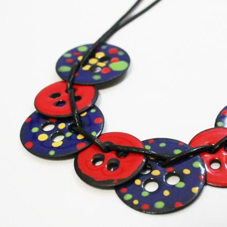 プラハの老舗、マニュファクチュラで見つけたネックレスはボタンの形がとても可愛くてお気に入り!