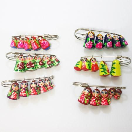 マトリョーカのピンはバッグに付けるアクセントにしても可愛い!沢山買ったら一つおまけしてもらいました!