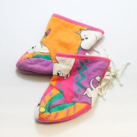フィンランドならではのムーミン使いがかわいい子供用の靴下。蚤の市でも沢山あったムーミングッズから選びました。