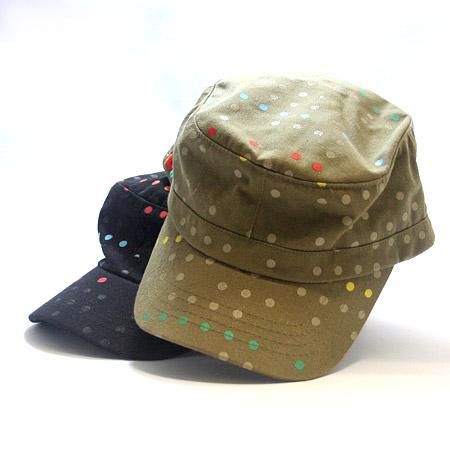 ドッド柄のキャップは、5カ国目のフィンランドで、雑貨バイヤーがショップ「LUX」で買い付けたもの。
